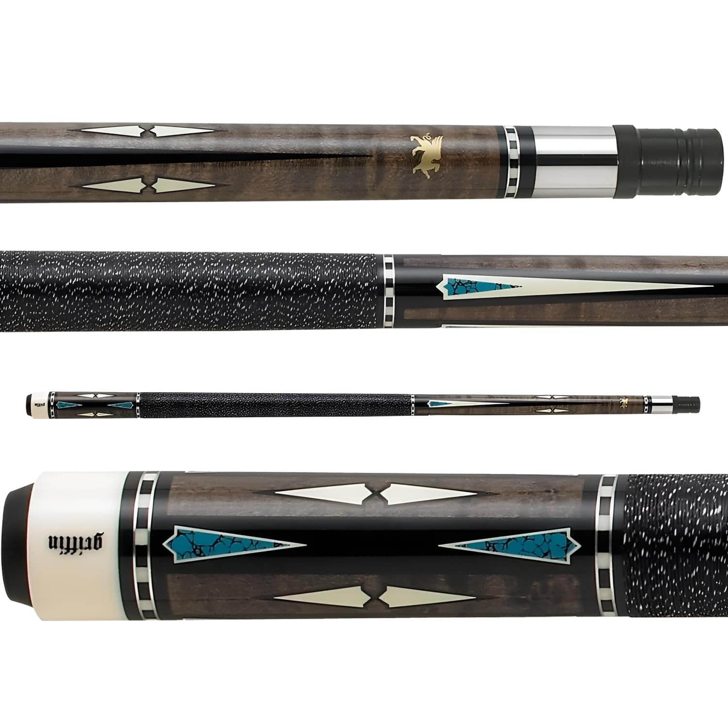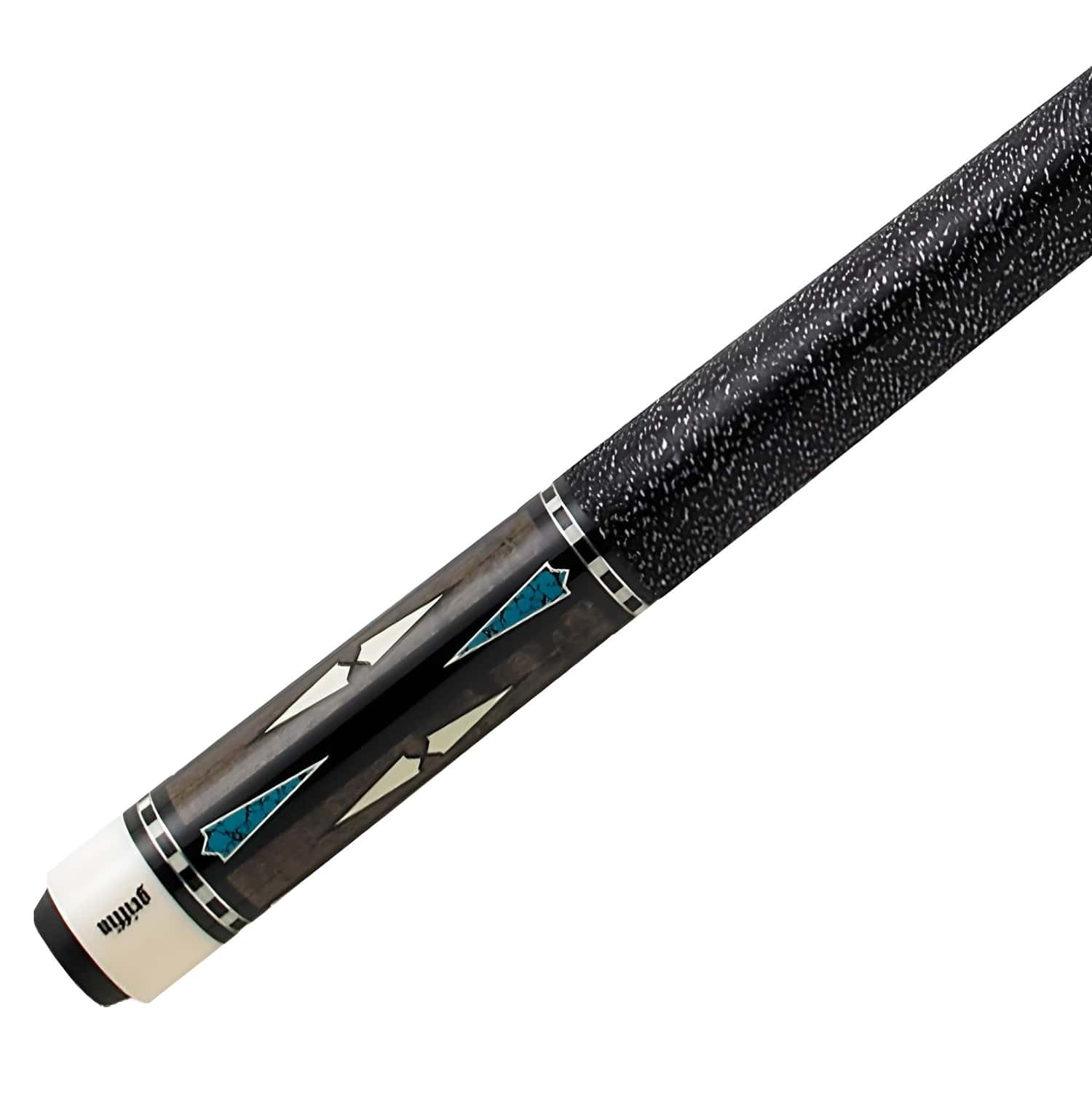 El taco de pool Griffin GR05 combina un diseño inspirado en el estilo suroeste con un rendimiento técnico de nivel profesional. Su elegante combinación de detalles turquesa y blanco sobre un cuerpo de maple teñido en negro lo convierte en una pieza que no solo destaca visualmente, sino que también ofrece un golpe sólido y equilibrado, ideal para jugadores que buscan potencia, control y una estética refinada. Con una calidad comparable a tacos de alta gama como Joss o Schon, el GR05 se posiciona como una opción accesible sin sacrificar rendimiento ni estilo.