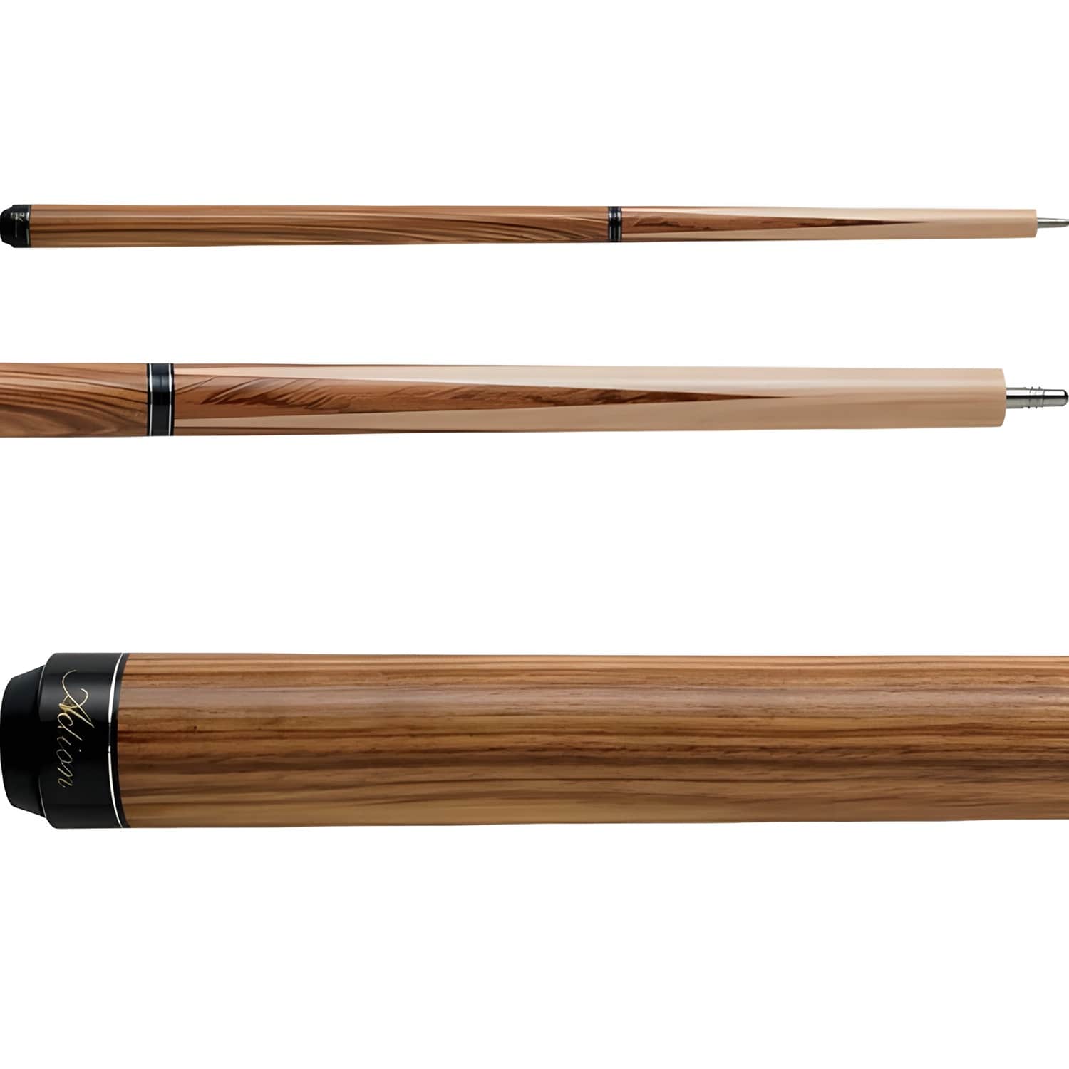 El mango y el sleeve en zebrawood crean una apariencia uniforme y profesional, mientras que el bumper de goma negra y la placa negra complementan el diseño con un toque moderno y funcional. Cada detalle fue cuidadosamente pensado para ofrecer un taco que no solo destaque visualmente, sino que también se sienta cómodo y balanceado en la mano del jugador.
