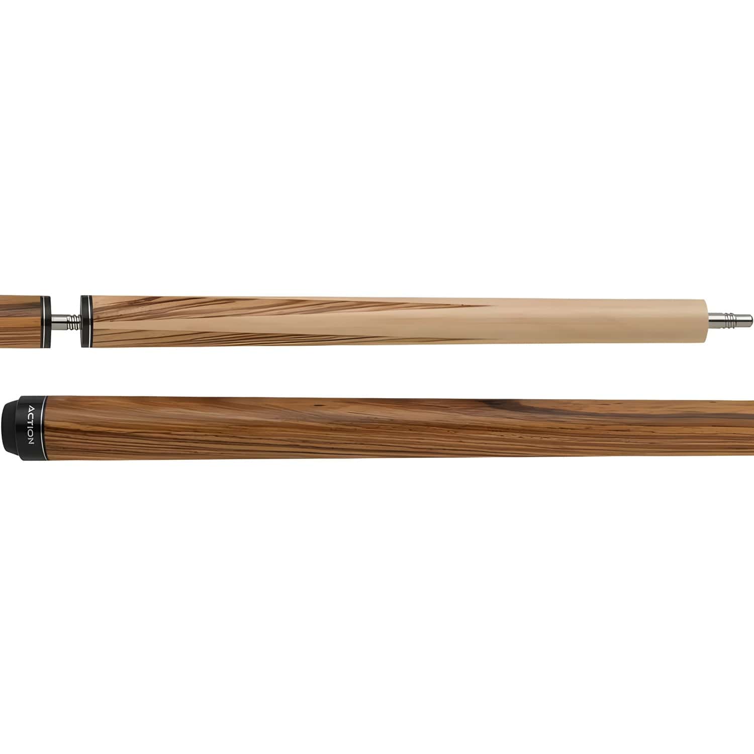El Action ACT BJZ presenta un diseño elegante con un acabado natural de zebrawood (madera cebra), que no solo le otorga un aspecto sofisticado, sino también una textura firme y equilibrada al tacto. Su construcción en hardrock maple de 29 pulgadas proporciona rigidez y estabilidad, factores esenciales para transferir la energía de manera eficiente durante cada rotura. Además, el ensamble wood-to-wood y el pin de liberación rápida Action Quick Release permiten una conexión sólida y confiable, ideal para quienes buscan un taco versátil y duradero.